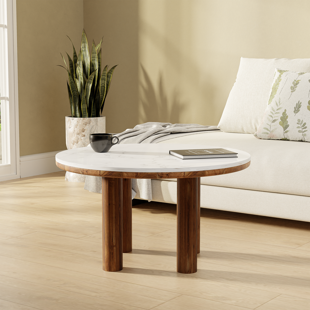 Belleza Coffee Table is an aesthetic and contemporary masterpiece crafted from acacia wood with a luxurious marble top. With its sleek design and timeless elegance, it brings sophistication to any living space. Versatile and stylish, it effortlessly elevates the aesthetic ambiance of any home.