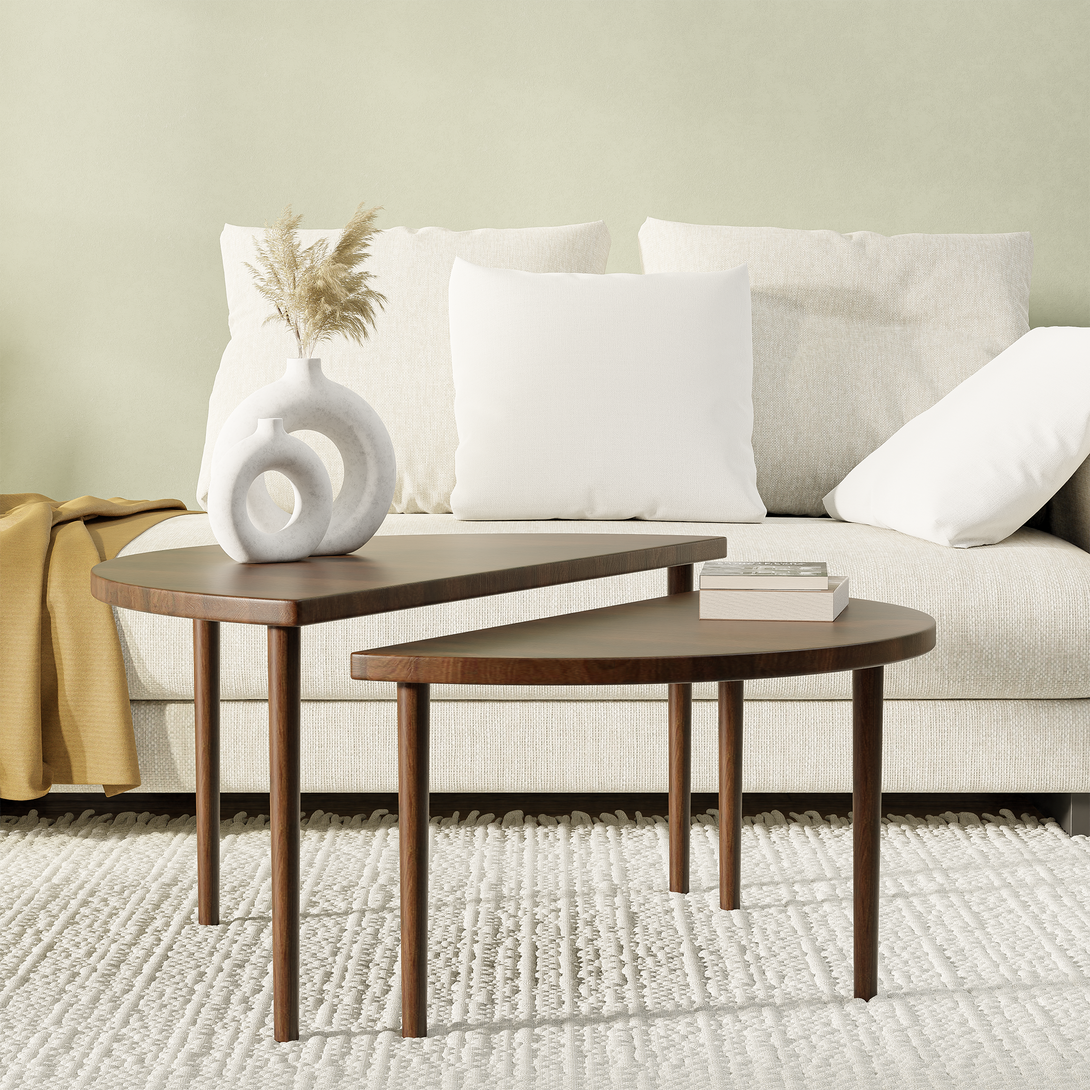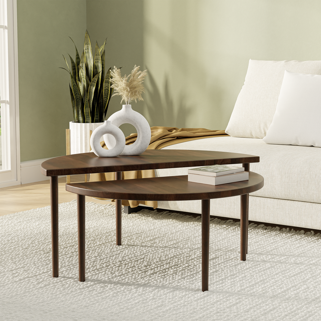 Crescent Nesting Coffee Table is a perfect blend of elegance, style, and functionality. Crafted from Acacia wood, this nesting coffee table set features semi-circle tops that exude contemporary charm. The versatile design allows you to use them separately or nest them together to save space when needed. Elevate your living space with the Crescent Nesting Coffee Table—a captivating addition that effortlessly combines aesthetics and practicality.