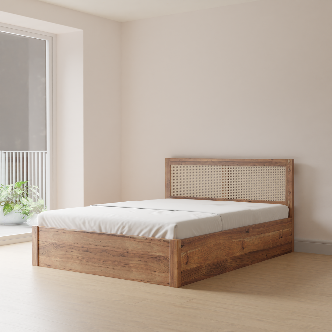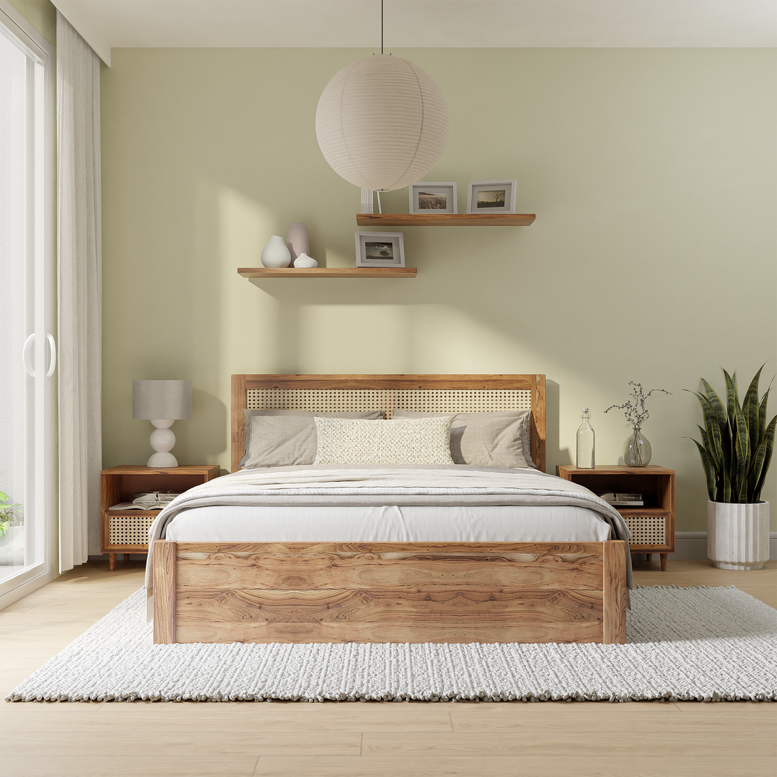 Elara Cane Bed is a timeless blend of craftsmanship and natural elegance. Its headboard is meticulously handwoven with cane, adding a touch of artistry to your bedroom. The bed frame is made of durable & sustainably sourced acacia wood, ensuring both style and sturdiness. Transform your sleeping space into a serene haven with the Elara Cane Single Bed—a statement of sophistication and natural beauty.