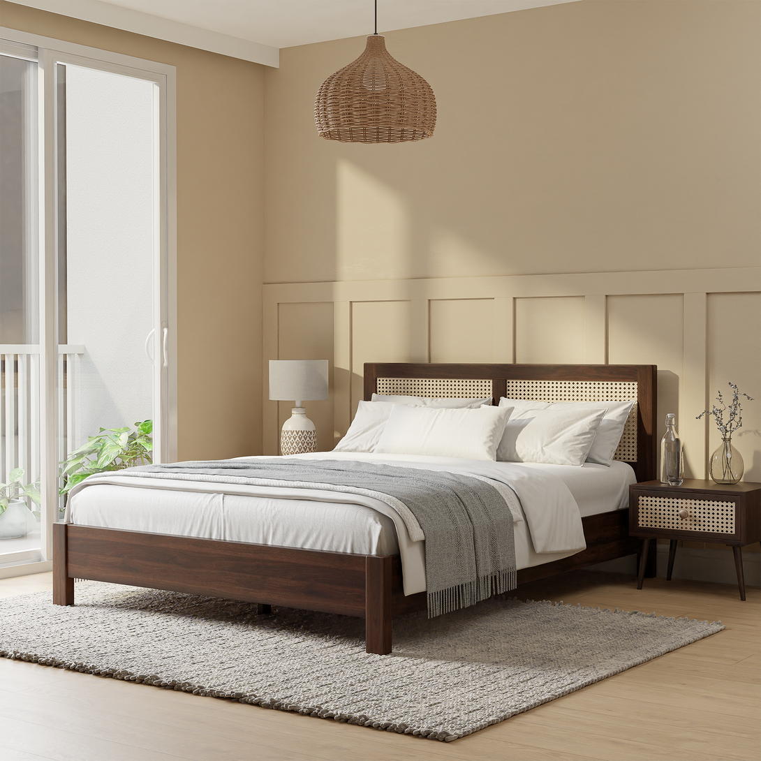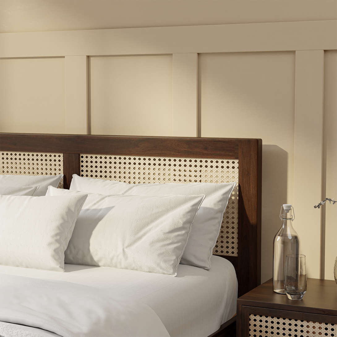 Emara Cane Single Bed is a timeless blend of craftsmanship and natural elegance. Its headboard is meticulously handwoven with cane, adding a touch of artistry to your bedroom. The bed frame is made of durable & sustainably sourced acacia wood, ensuring both style and sturdiness. Transform your sleeping space into a serene haven with the Elara Cane Single Bed—a statement of sophistication and natural beauty.