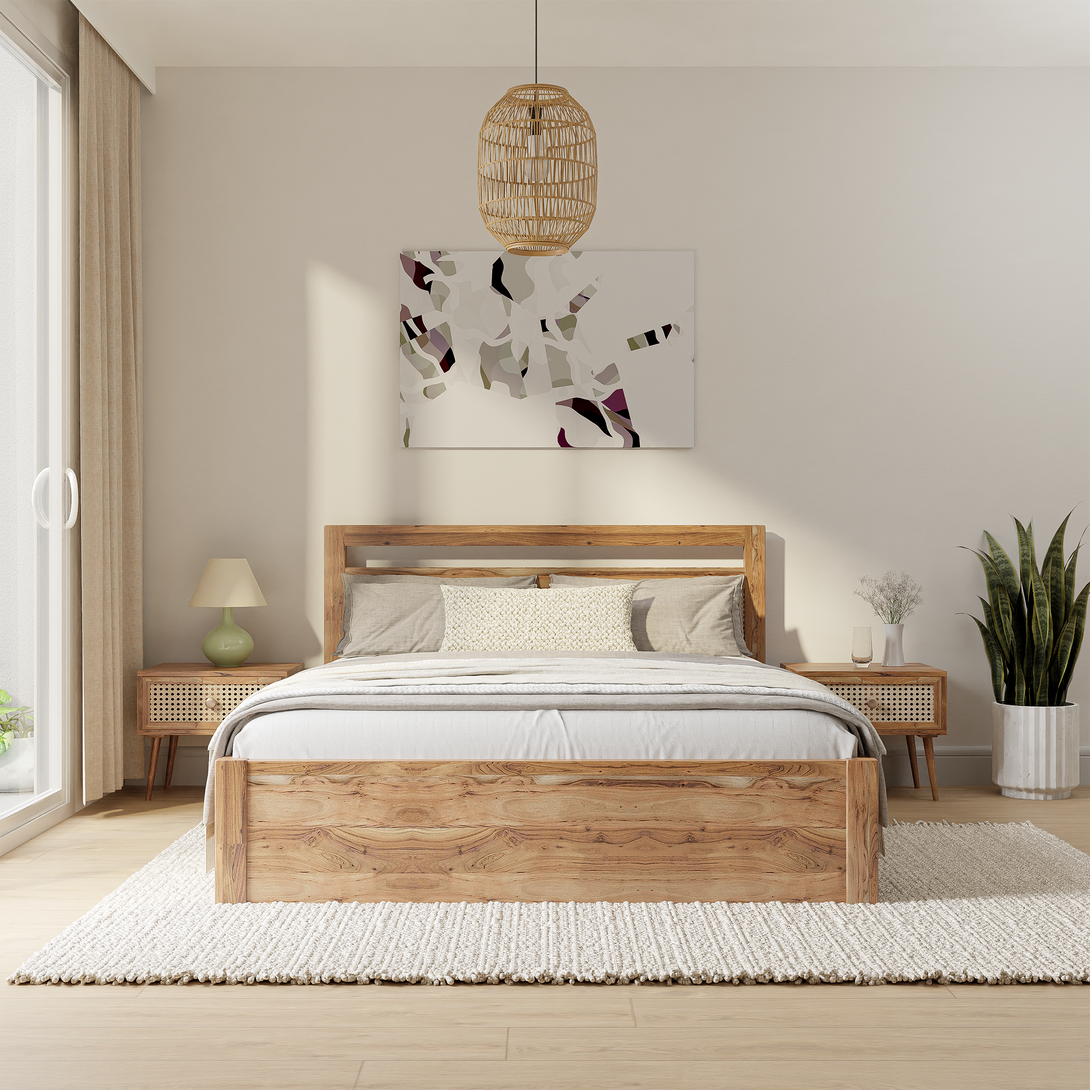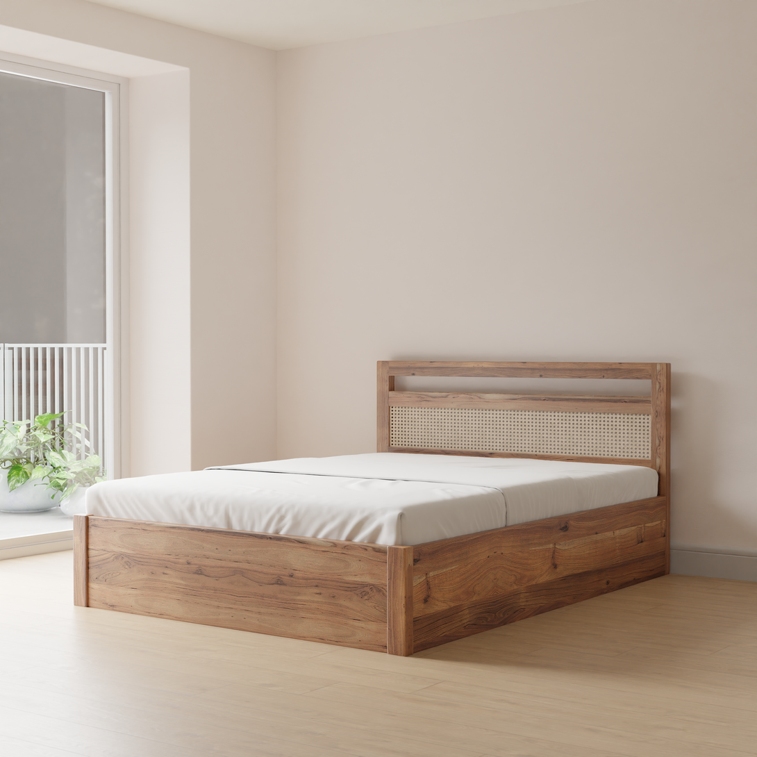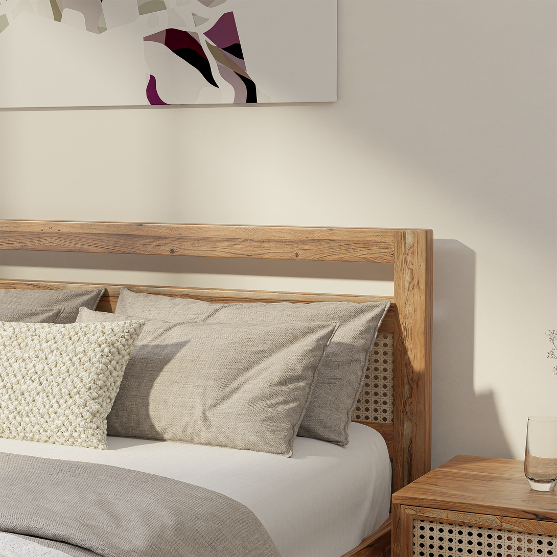 Indira Cane Bed is a timeless blend of craftsmanship and natural elegance. Its headboard is meticulously handwoven with cane, adding a touch of artistry to your bedroom. The bed frame is made of durable & sustainably sourced acacia wood, ensuring both style and sturdiness. Transform your sleeping space into a serene haven with the Elara Cane Single Bed—a statement of sophistication and natural beauty.